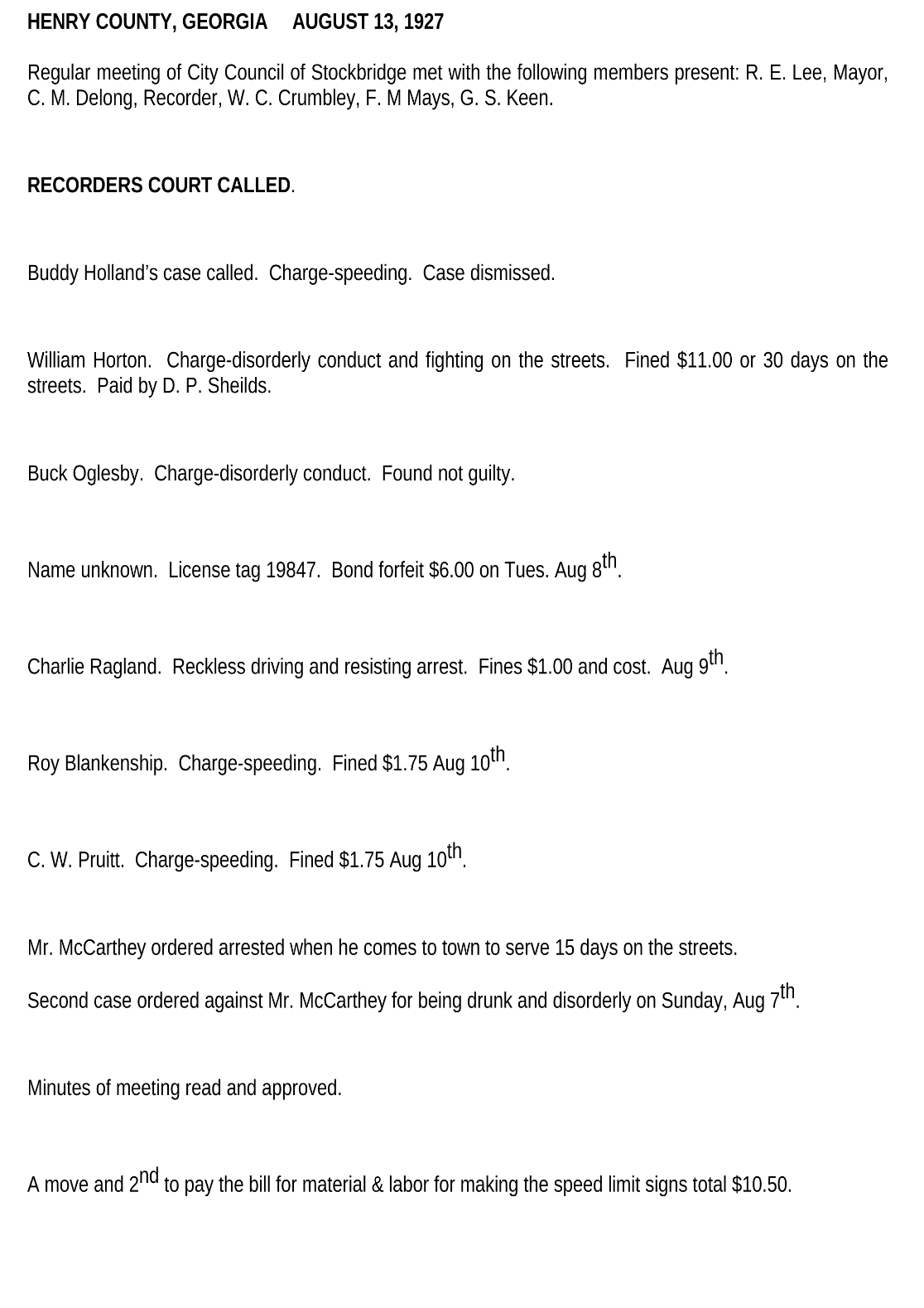 These are some of the first minutes of city meetings you can find concerning the name Lee in Stockbridge. Yes, we all see the mayor…