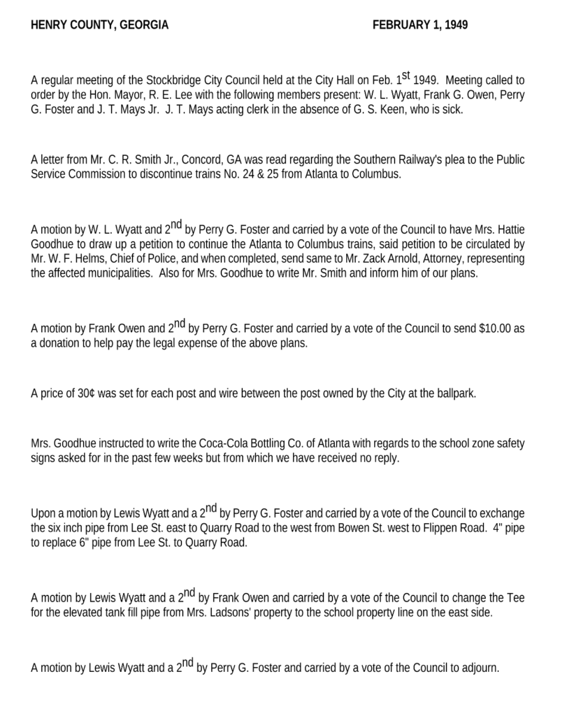 These are some of the first minutes of city meetings you can find concerning the name Lee in Stockbridge. Yes, we all see the mayor was named R.E.